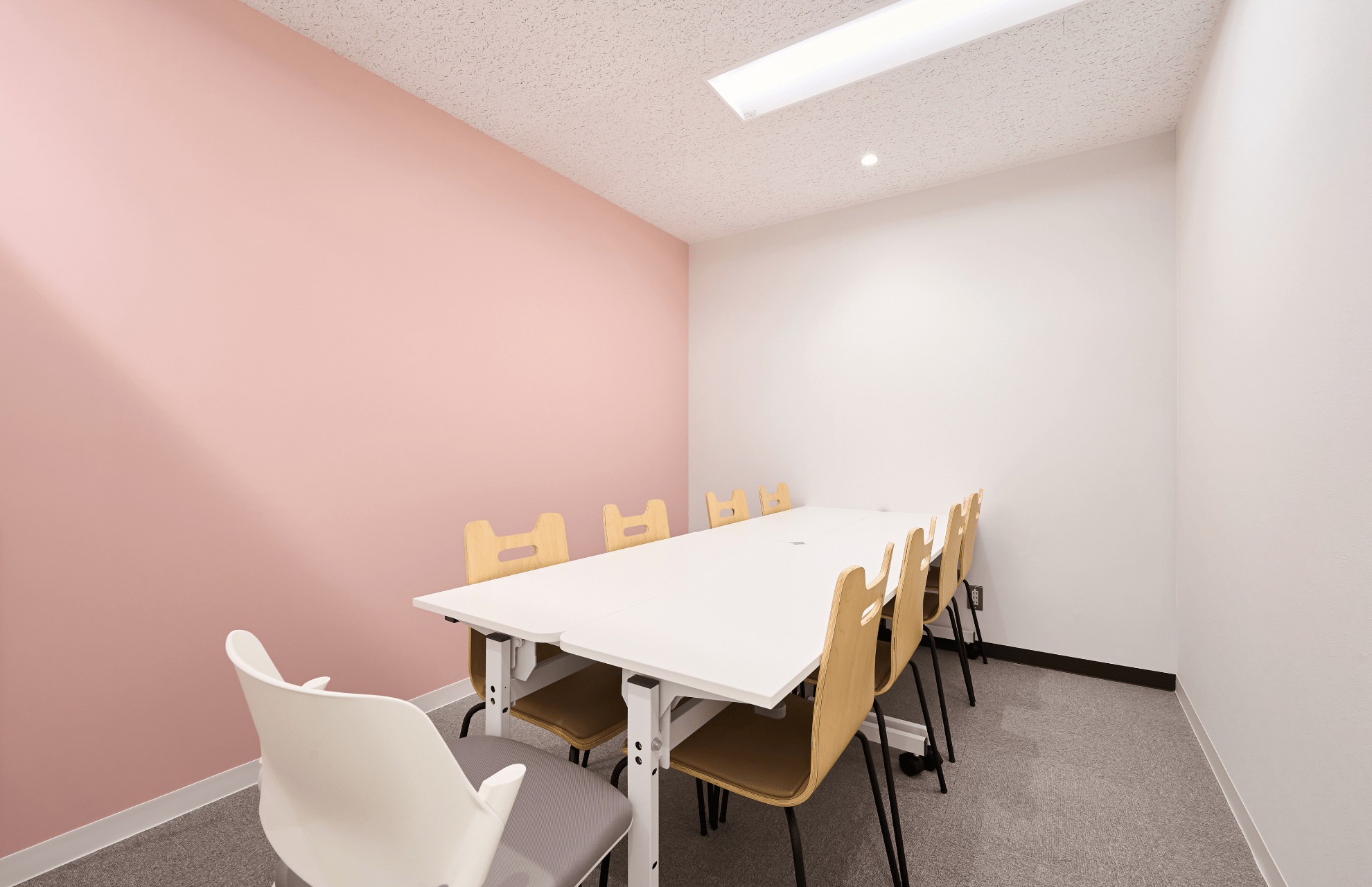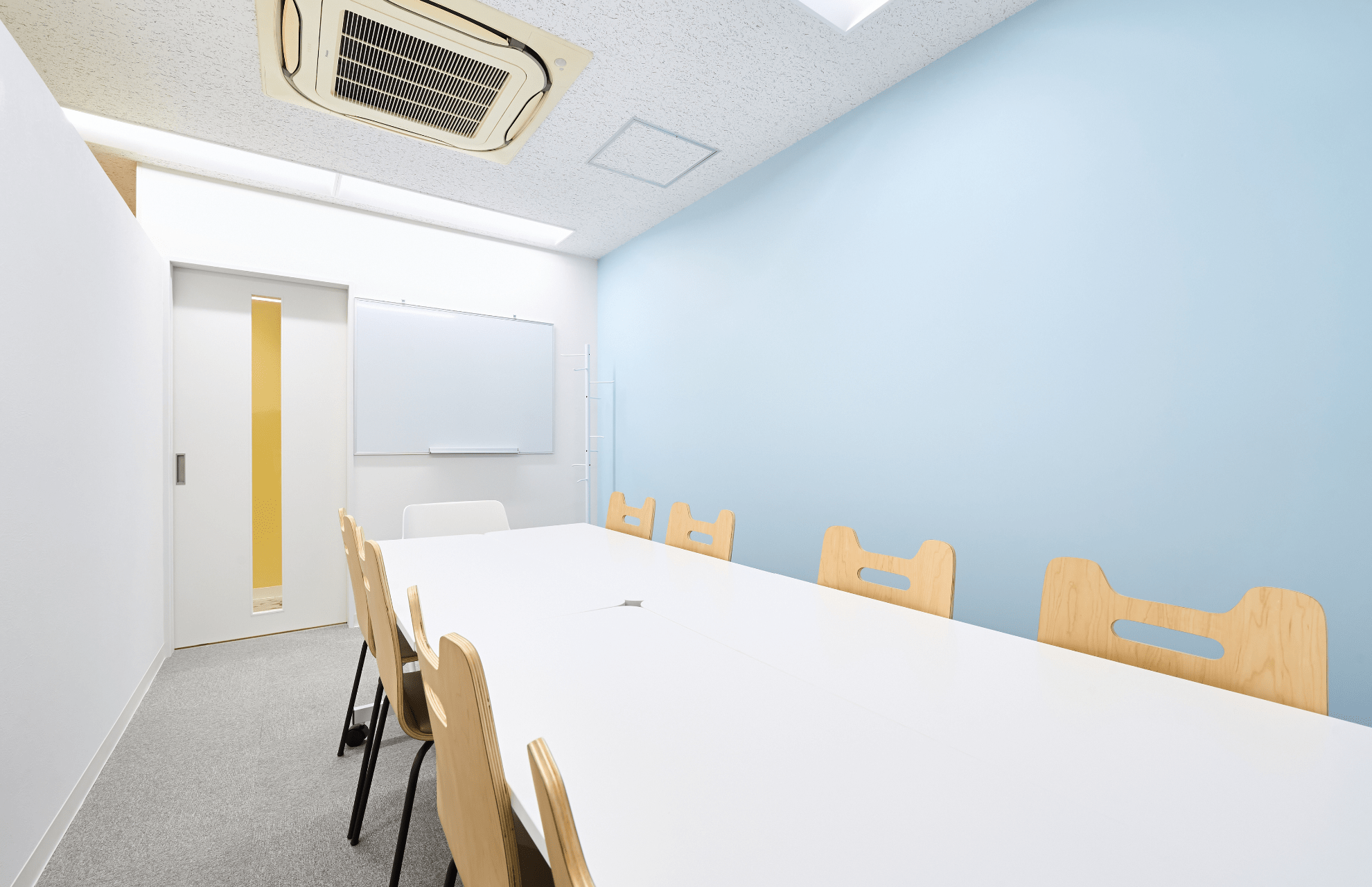 レイアウト面では、限られたスペースの中で教室数を増やしつつ、動線の確保と快適な学習環境の両立を実現。教室は全12室+オンラインブース1室を設置しました。有人カウンターがない構成のため、入口や通路の位置関係を丁寧に調整し、効率的で使いやすい配置にしました。お客様のご予算に合わせながらも、デザイン性と機能性を損なわない最適解を導き出しました。