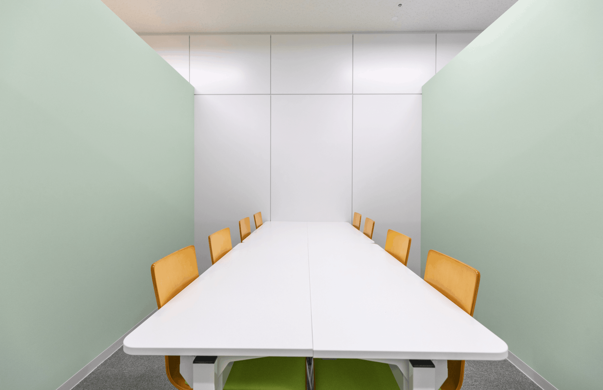 今回のスペースは窓がない区画で、防災条件や排煙計画において制約の多い環境でした。自由に間仕切り壁を立てられないという課題に対し、告示などの法令を精査し、クリアできるレイアウトを緻密に設計いたしました。計10教室と1つの講師室を効率的に配置しながら、まっすぐな動線とグラデーションのアイディアを取り入れることで、制約を逆手に取った機能的な空間を実現しております。